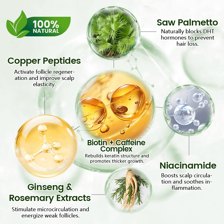 It enhances scalp microcirculation, suppresses DHT formation, and reactivates dormant follicles â with visible regrowth in as little as 4 weeks.