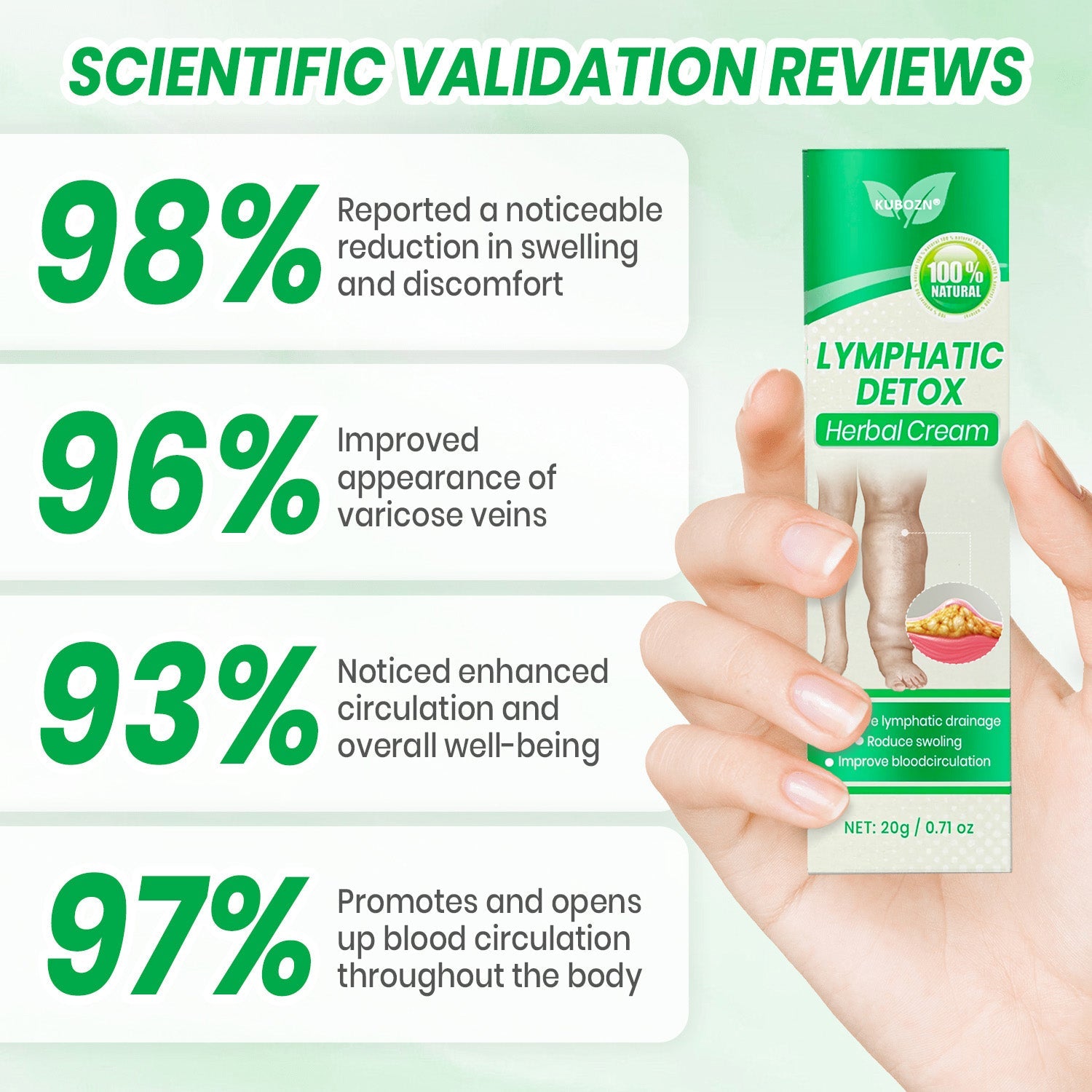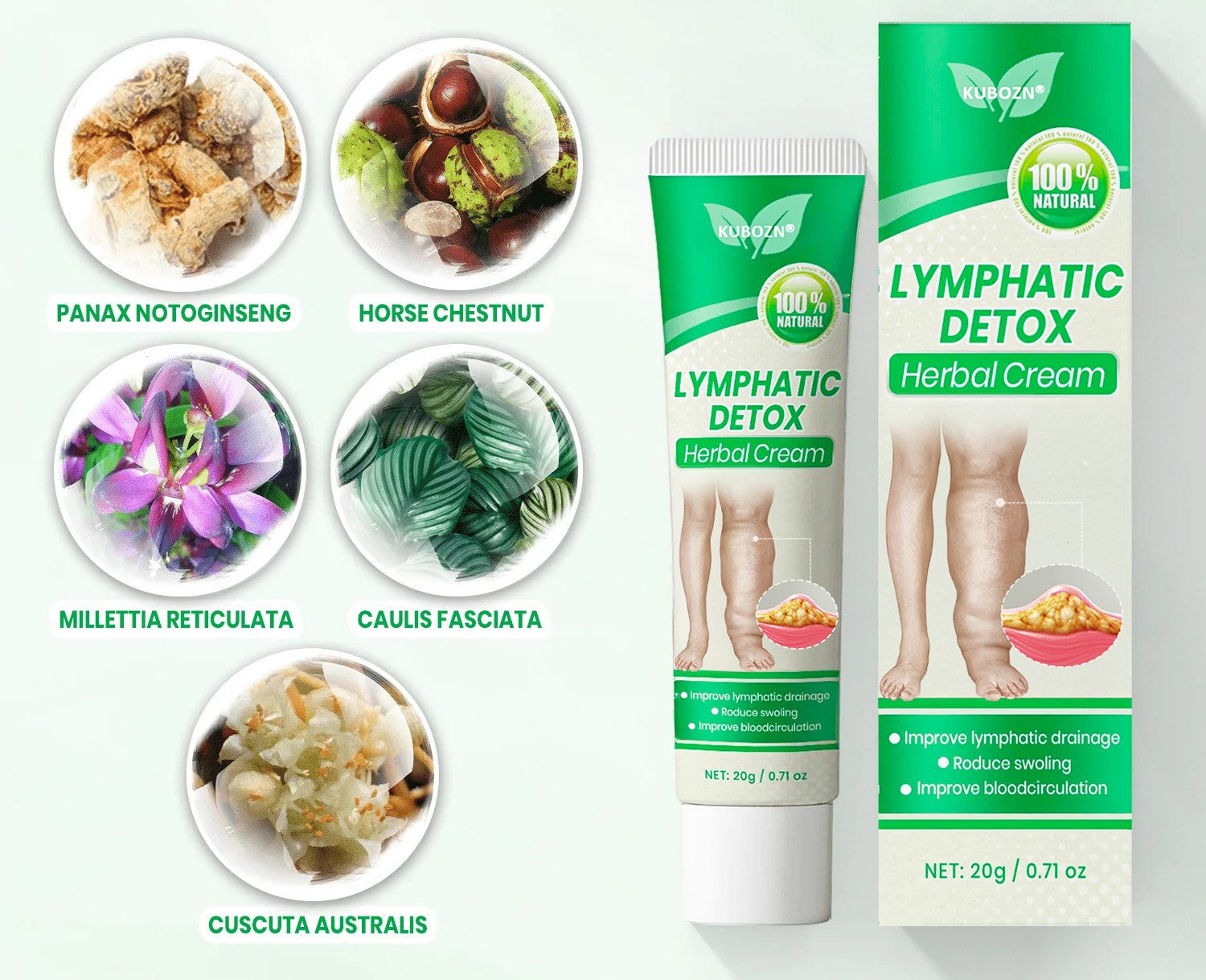 KUBOZN® Lymphatic Detox Herbal Cream is formulated with natural ingredients that work together to reduce swelling, ease discomfort, and support healthy circulation. By promoting the body's natural detox processes, this cream helps relieve puffiness and restore balance, leaving you feeling lighter, more refreshed, and energized.