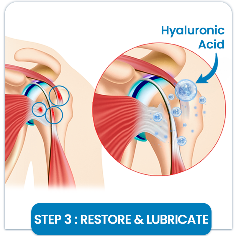 Hyaluronic Acid replenishes natural lubrication, making movement smoother and more comfortable.
